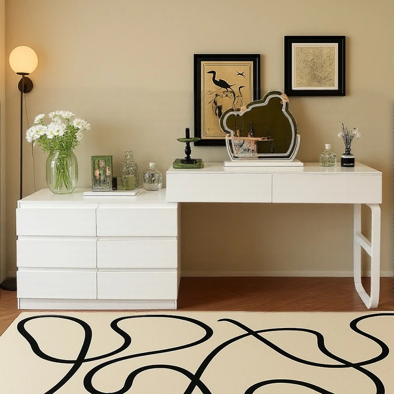 Modern Minimalist Vanity Table for Girls' Bedrooms - 2025 New Design, Perfect for Small Spaces, Doubles as a Stylish Desk and Storage Solution at the Foot of Your Bed