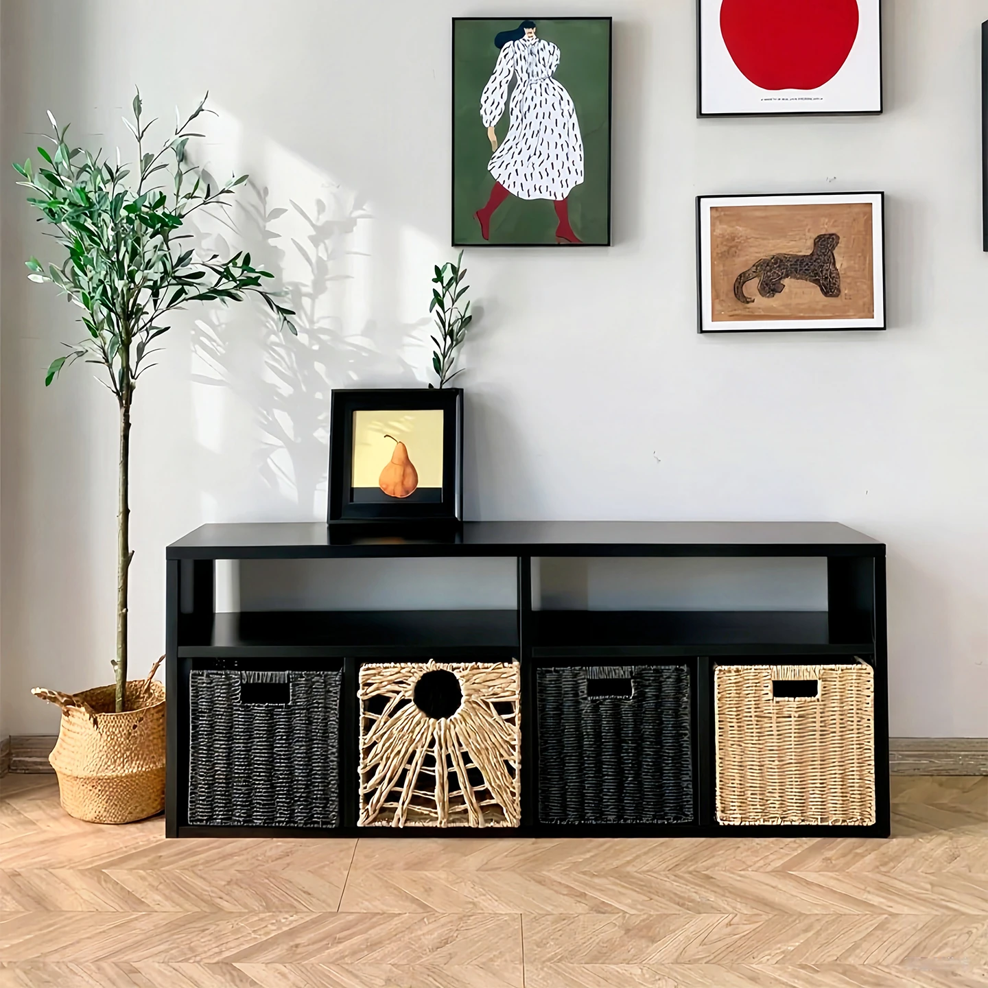 Black Vintage Style Storage Cabinet - Versatile Bookshelf, TV Stand, and Side Cabinet for Window Nooks - Perfect for Organizing Your Space with Flexible Combinations