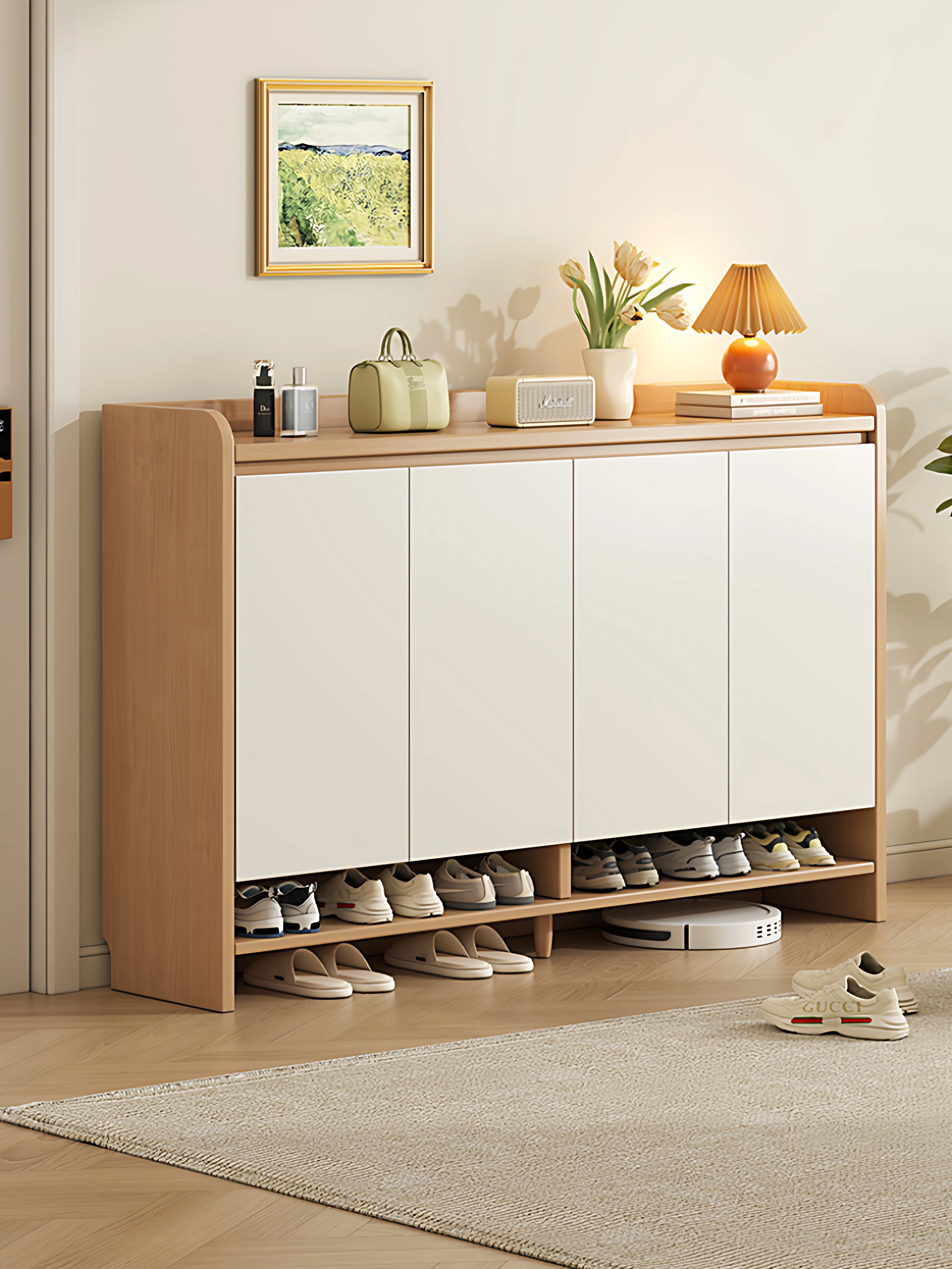 Spacious Entryway Shoe Cabinet - Stylish Indoor Wall-Mounted Storage Unit with Large Capacity for Home Entryway, Perfect for Organizing Shoes and Accessories