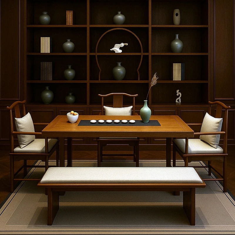 New Chinese Style Tea Table Set - Rectangular Tea Table with 5 Chairs for Office, Tea Room, and Home Brewing - Perfect for Reception and Gathering
