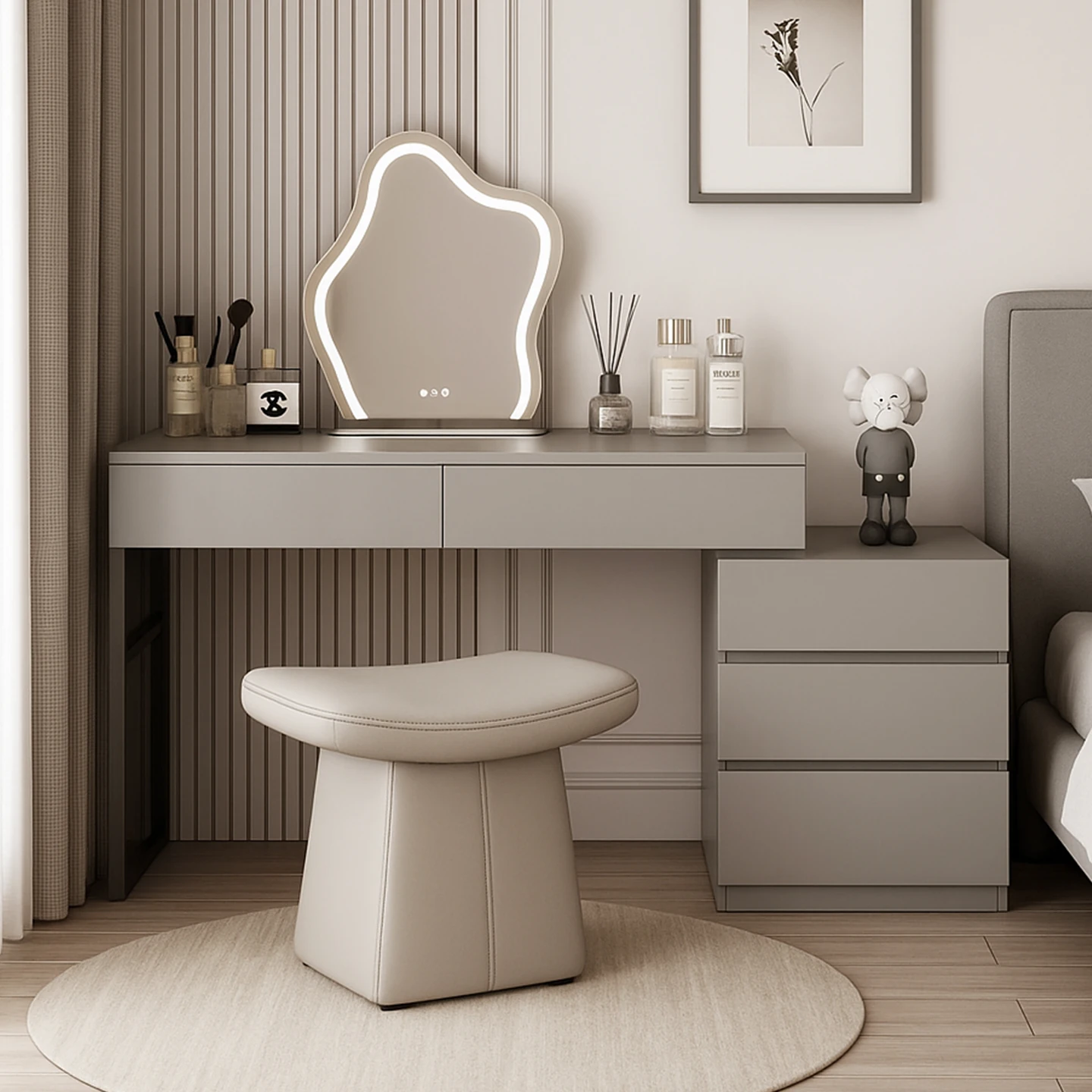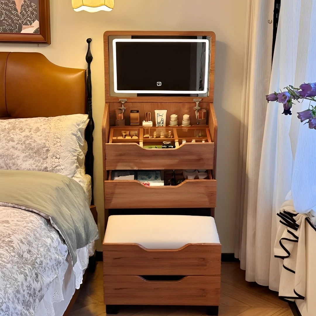 Modern Minimalist Makeup Vanity Table with Mirror - 2025 New Stylish Makeup Cabinet for Bedroom, Compact Design for Effortless Beauty Routine