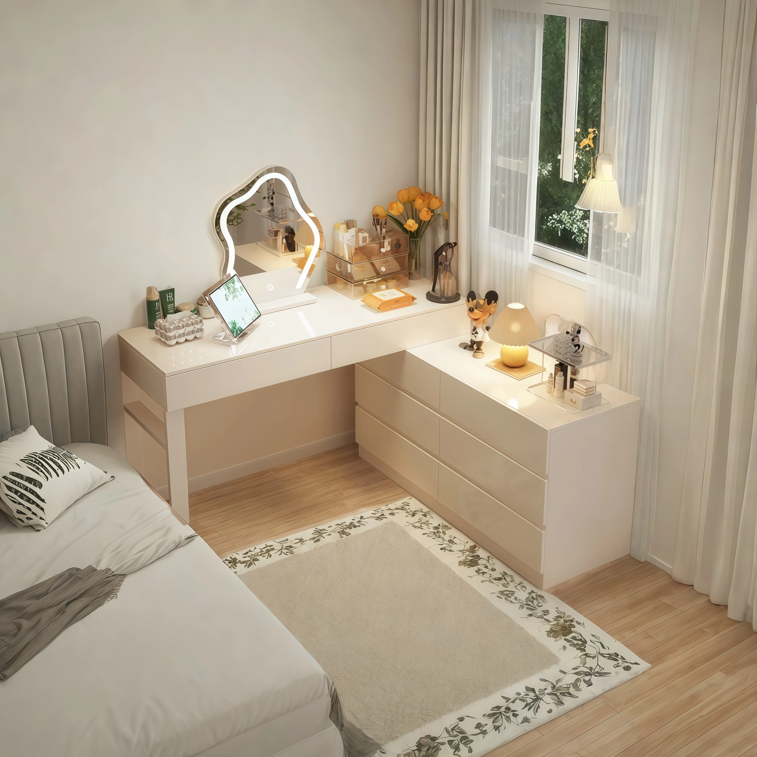 2025 New Modern Corner Vanity Table - Stylish Makeup Desk & Computer Workstation with Storage Nightstand for Your Bedroom