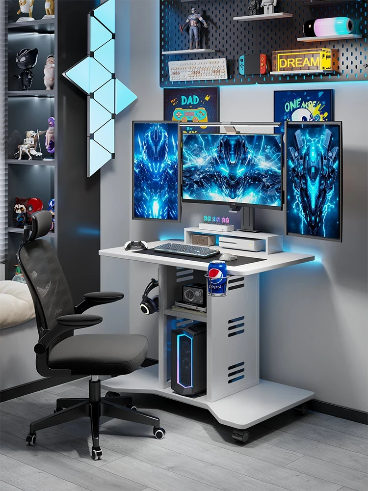 Compact Solid Wood Computer Desk with Wheels - Movable Gaming Table for Small Spaces, Ideal for Bedroom or Side of Bed, Minimalist Design for Single Use
