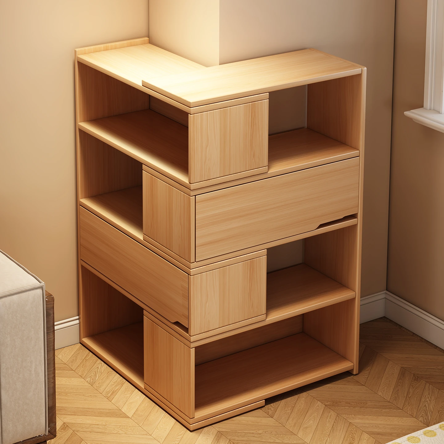 Vintage Corner Bookshelf - Stylish Triangular Storage Cabinet for Living Room and Bedroom, Perfect for Wall Corners and Home Organization