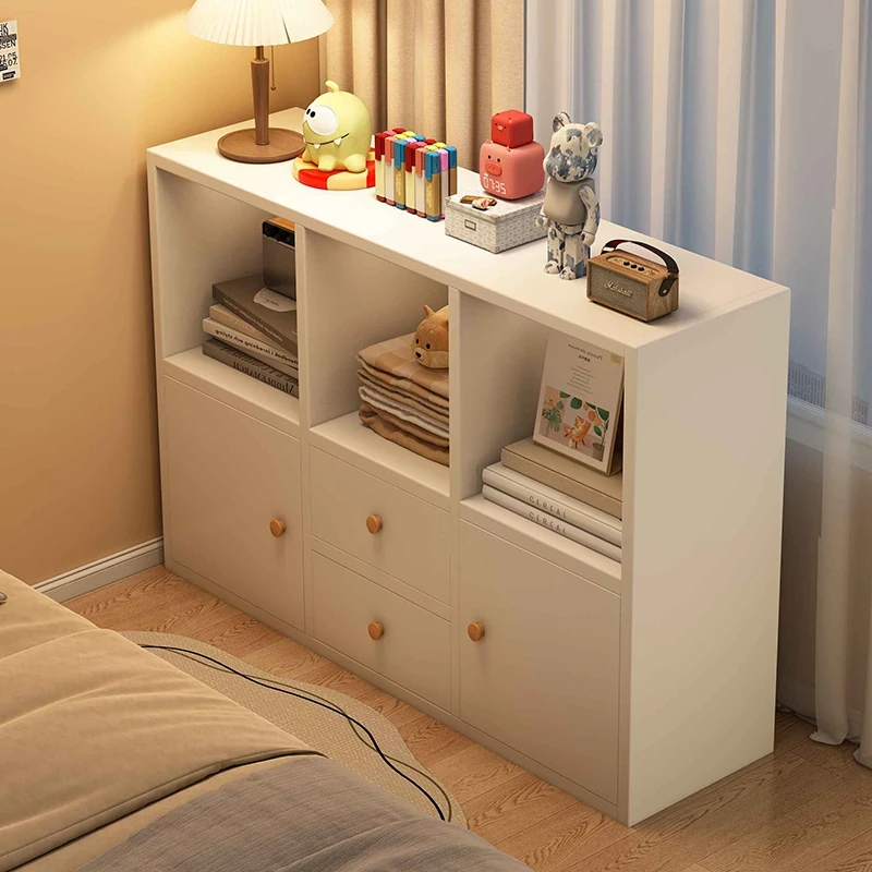 Wooden Style Floor Bookshelf and Storage Rack - Wall-Mounted, Perfect for Kindergarten Picture Book Organization, Features Cabinet Doors and Compact Design for Efficient Storage Solutions.