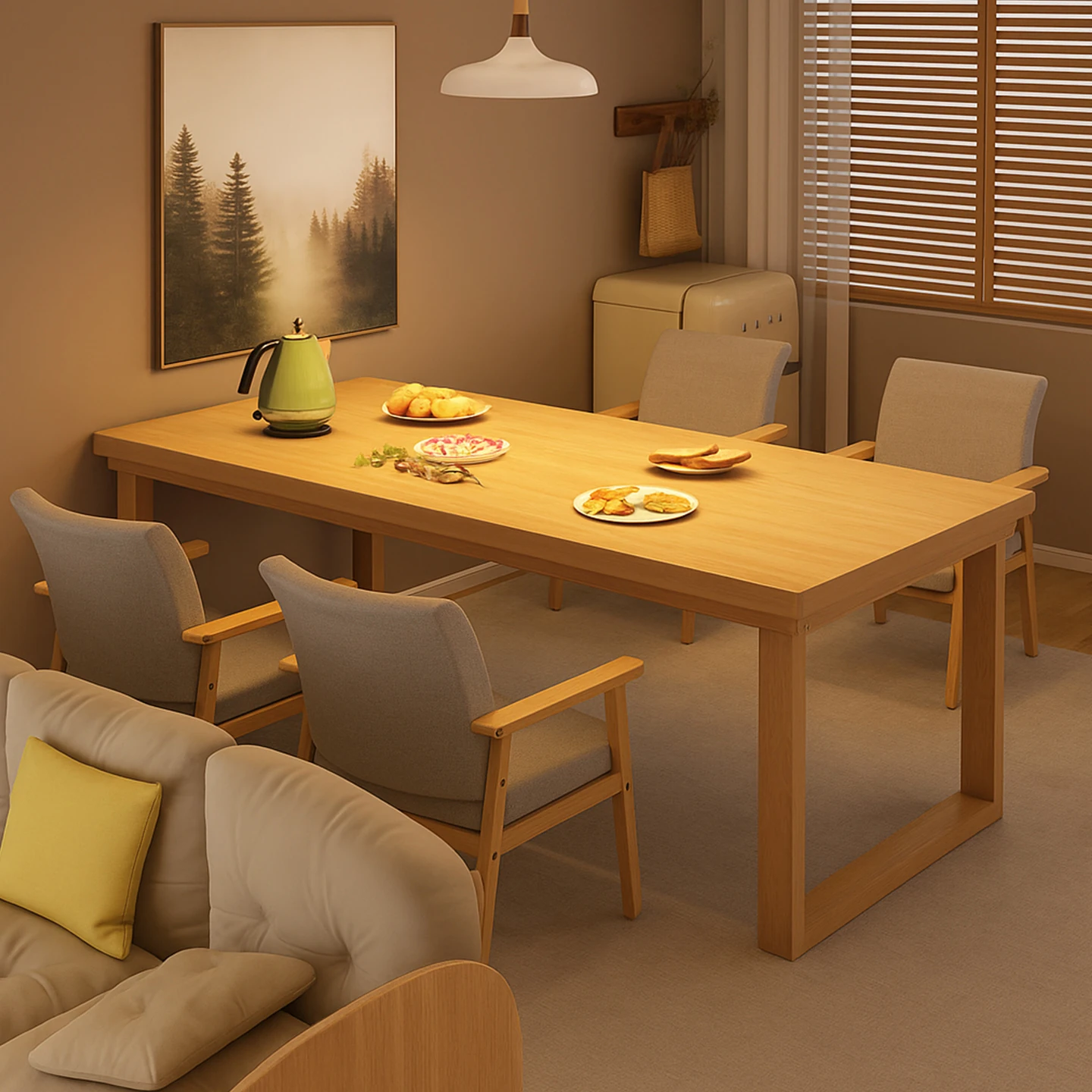 2025 New Rectangular Solid Wood Dining Table – Space-Saving Design for Small Homes, Perfect for Living Rooms, Includes Dining Chairs, Ideal for Cozy Family Meals