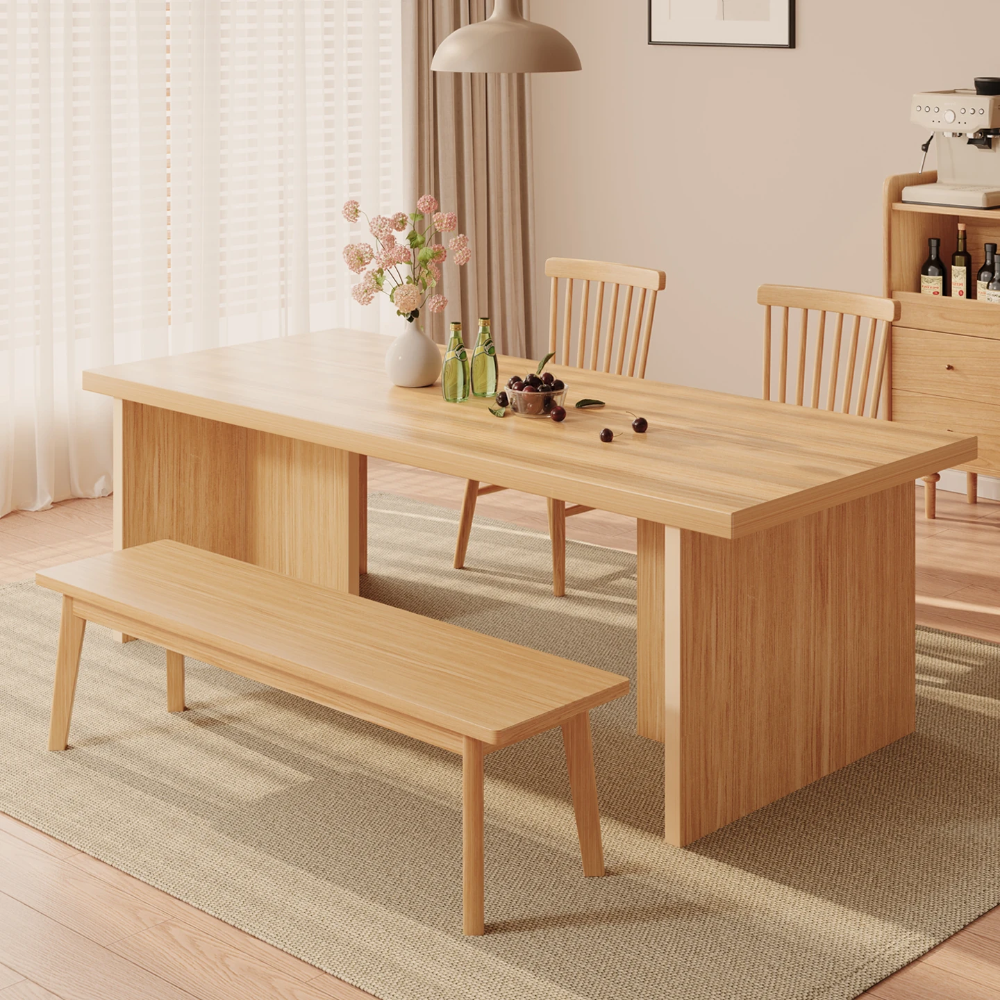 Modern Minimalist Japanese Style Solid Wood Dining Table Set - Large Rectangular Table with Chairs for Home Dining Room