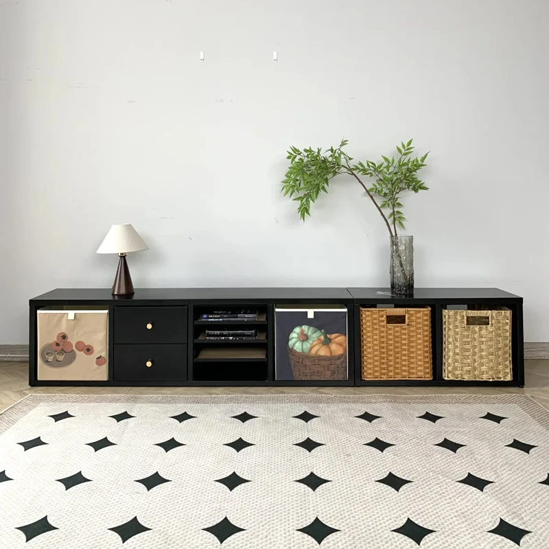 レトロなブラックチェックのキャビネット、本棚、リビング用収納キャビネット、スタイリッシュな組み合わせのフロアボード。オシャレな収納で、あなたの空間を素敵に演出します!