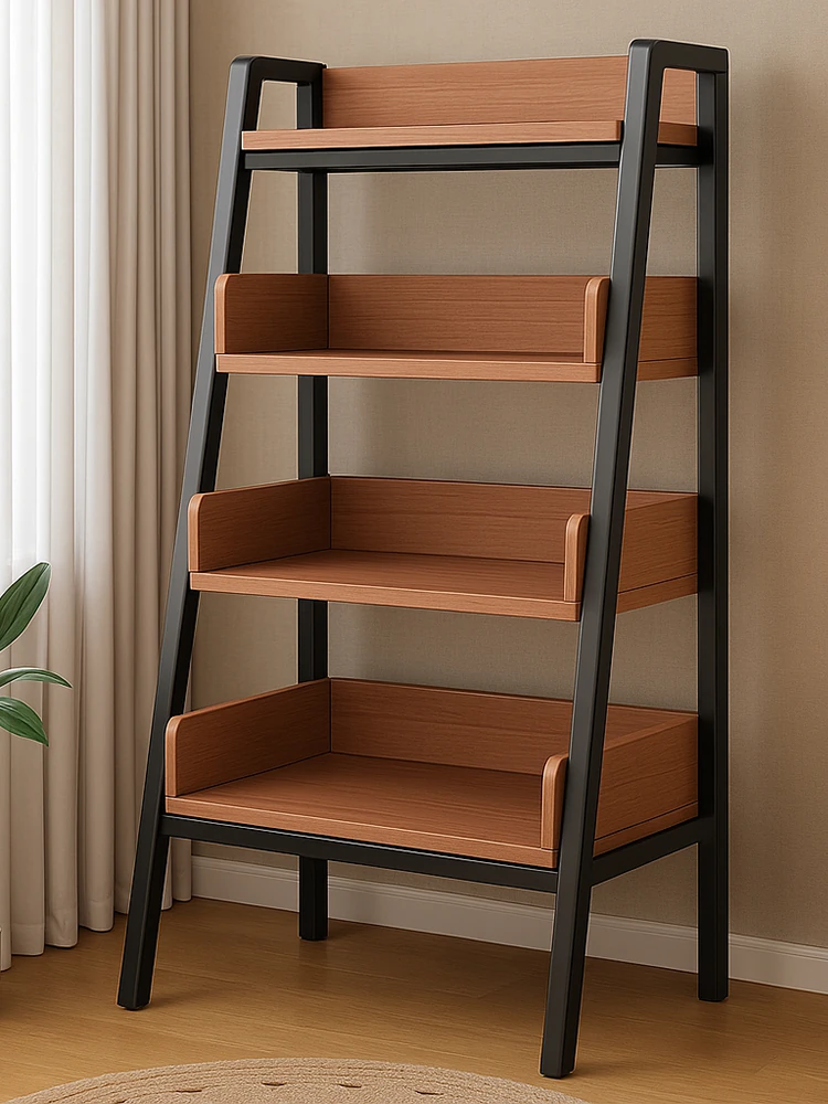 スタイリッシュなアイアン製のフロアシェルフ!家庭用の狭いスペースにぴったりな簡易書棚。リビングに最適な多層収納ラックで、雑誌や本をスッキリ整理。おしゃれで機能的な収納を実現!