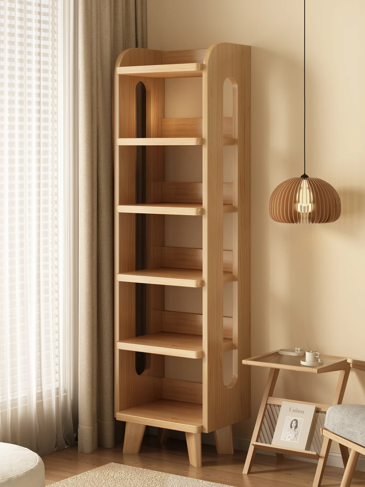 壁に寄せて使える角型本棚!高品質の無垢材を使用した家庭用収納キャビネット。シンプルで多層の収納ラックはスペースを取らず、窓際のアイテムを美しくディスプレイします。整理整頓も簡単!