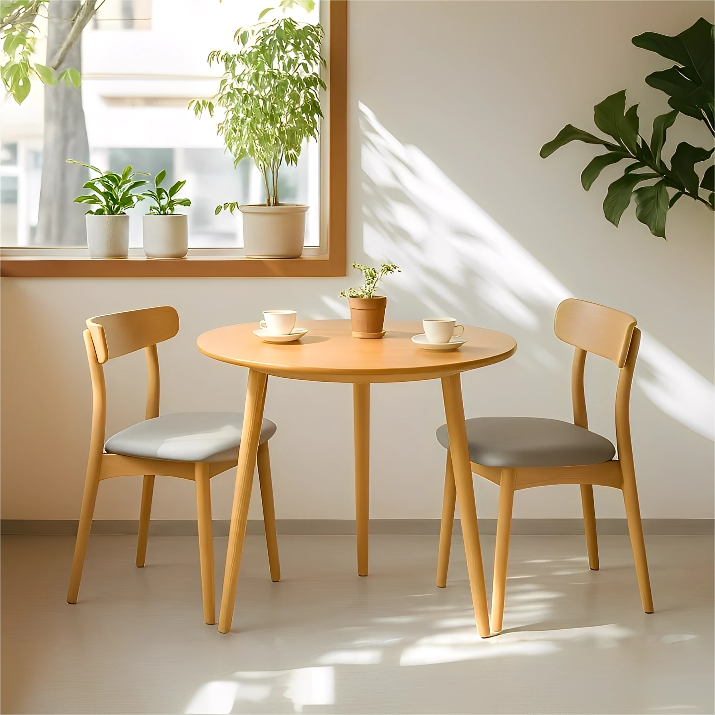 経済的なウッド調ラウンドテーブル - コーヒーやティーに最適なカフェ用、商業用、読書にもぴったりなスタイリッシュな円形ダイニングテーブル。ナチュラルなウォールナット色で、どんなインテリアにも合う!