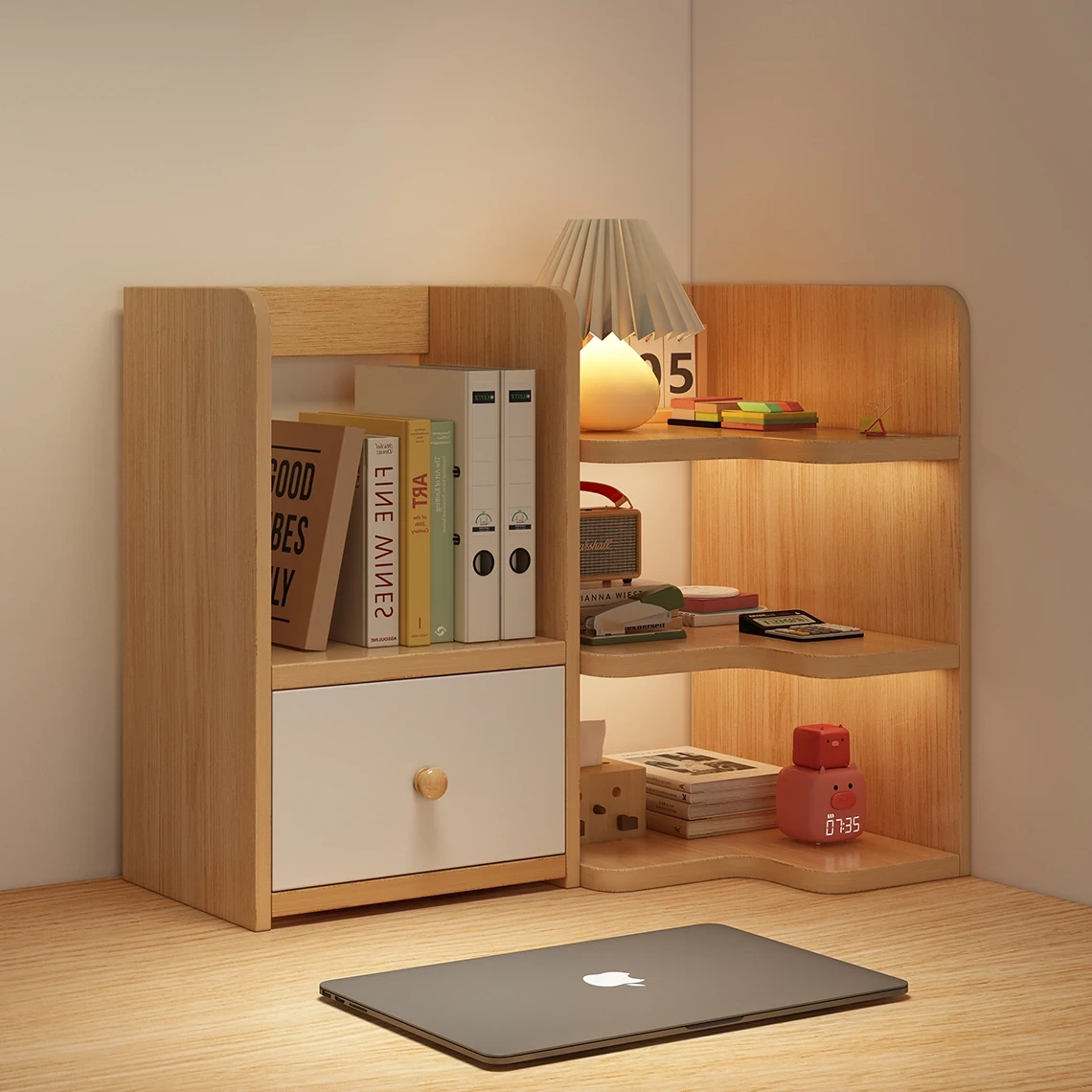 デスク用コーナー収納ラック - スタイリッシュなデザインでデスク周りをスッキリ整理!オフィスや学生の勉強スペースに最適な小型キャビネット。効率的な収納で作業効率アップ!